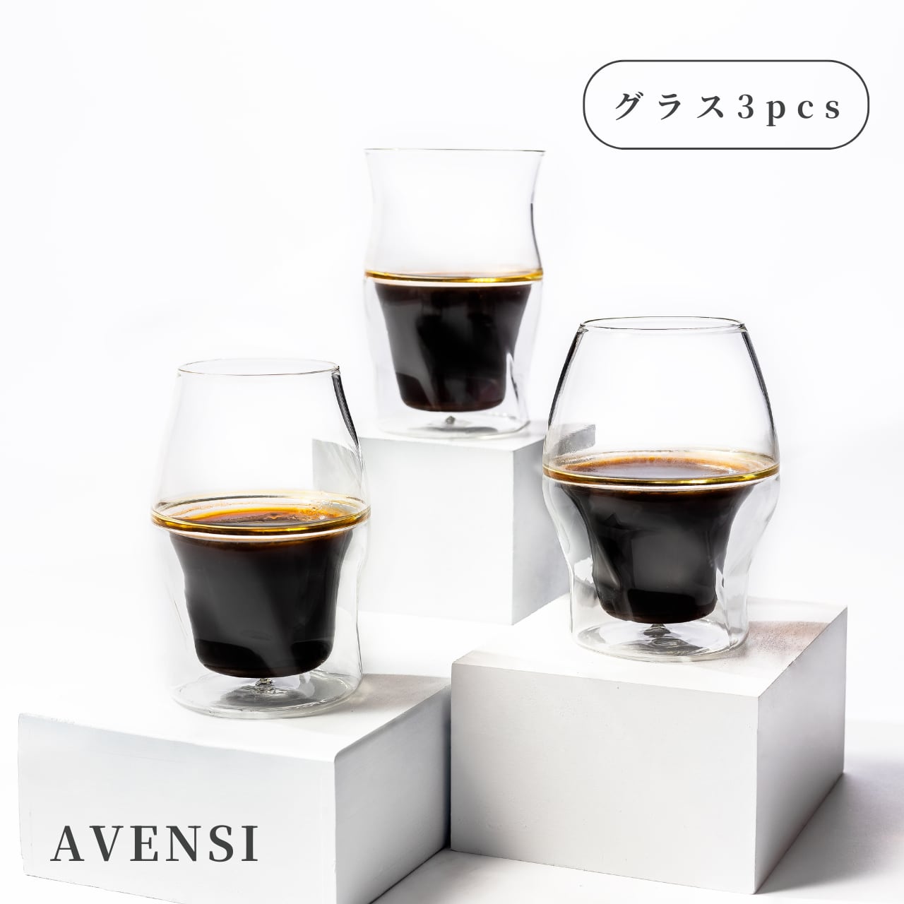 【SCA Awards2021 最優秀賞受賞】 ハンドクラフトコーヒーグラス『AVENSI(アヴェンシ)』 《お届け内容》 ・AVENSI本体(3種グラス):1点 ・オリジナルコースター(3枚セット):1点 ・オリジナルクロス:1点 ・取り扱い説明書(日本語の説明書はQRコードからWEB対応):1点 ・AVENSI ガイドブック:1点 --- 《製品仕様》 ・製法:手づくり(手吹き) ・素材:耐熱ガラス(ホウケイ酸ガラス) ・食器洗い機:使用可能(家庭用) ・電子レンジ:使用可能 ・製造国:中国 ※キートス合同会社は「AVENSI」の日本総代理店です --- AVENSI シリーズで、自分にぴったりの商品をお探しの方へ。ぜひ、以下のURLをご覧ください。 ⇒https://kiitosllc.theshop.jp/p/00009 ※こちらのグラスは1点1点手作りのため、グラスによって形状や仕上がり、サイズ、重量、厚さ等に誤差、若干のがたつき、製法上やむを得ずスリ傷のような線やポッチ、円状模様、型跡がみられ、気泡が混入している場合がございます。グラスの"味わい"としてお楽しみください。 ※現在、こちらの商品はラッピング等の特別包装は承っておりません。オリジナルショッパーをご利用ください。