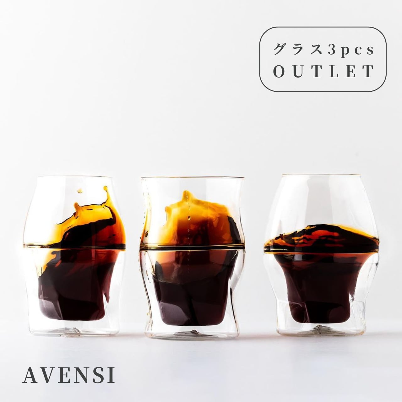 【数量限定販売】 ハンドクラフトコーヒーグラス『AVENSI(アヴェンシ)3種セット』のOUTLETを数量限定で販売いたします。 《すでにAVENSIグラスをお持ちの方》や《お試ししたい方》、《自分用に欲しい方》におすすめ! 訳ありの内容は主に、グラス本体のキズやスレ、内包物、化粧箱のキズやへこみ等です。 本体は普段使いに問題ございません。 《お届け内容》 ・OUTLET AVENSI本体(3種グラス):1点 ・オリジナルコースター(3枚セット):1点 ・オリジナルクロス:1点 ・取り扱い説明書(日本語の説明書はQRコードからWEB対応):1点 ・AVENSI ガイドブック:1点 --- 《製品仕様》 ・製法:手づくり(手吹き) ・素材:耐熱ガラス(ホウケイ酸ガラス) ・食器洗い機:使用可能(家庭用) ・電子レンジ:使用可能 ・製造国:中国 ※キートス合同会社は「AVENSI」の日本総代理店です --- AVENSI シリーズで、自分にぴったりの商品をお探しの方へ。ぜひ、以下のURLをご覧ください。 ⇒https://kiitosllc.theshop.jp/p/00009 【注意事項】 ※当商品はアウトレット品です。(アウトレット商品とは、検品時にA品として出荷ができなくなってしまった商品や展示品、化粧箱の破損等です。普段使いには問題ございません。) ※無くなり次第終了となりますが、予告なしに、在庫を終了または追加する場合がございます。 ※お届けする商品のアウトレット内容はお選びいただけませんので、ご了承ください。 ※当商品は当ショップ限定で販売しております。 ※ご購入前に必ず、画像内の『必ずお読み下さい』をお読み下さいますようお願い申し上げます。 ※こちらのグラスは1点1点手作りのため、グラスによって形状や仕上がり、サイズ、重量、厚さ等に誤差、若干のがたつき、製法上やむを得ずスリ傷のような線やポッチ、円状模様、型跡がみられ、気泡が混入している場合がございます。グラスの"味わい"としてお楽しみください。 ※ギフトラッピング等の特別包装は承っておりません。