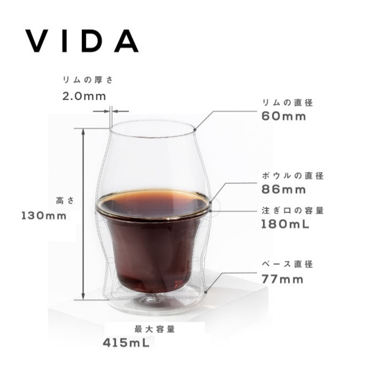 A.当グラスは耐熱ガラスです。強度は普通のガラスと同程度ですがガラスの厚さは2.0mmで、通常1mmの厚さの通常のダブルウォールマグよりも厚くなっています。※安全性を保証するものではありません。本体を落としたり、ぶつけたりしないでください。